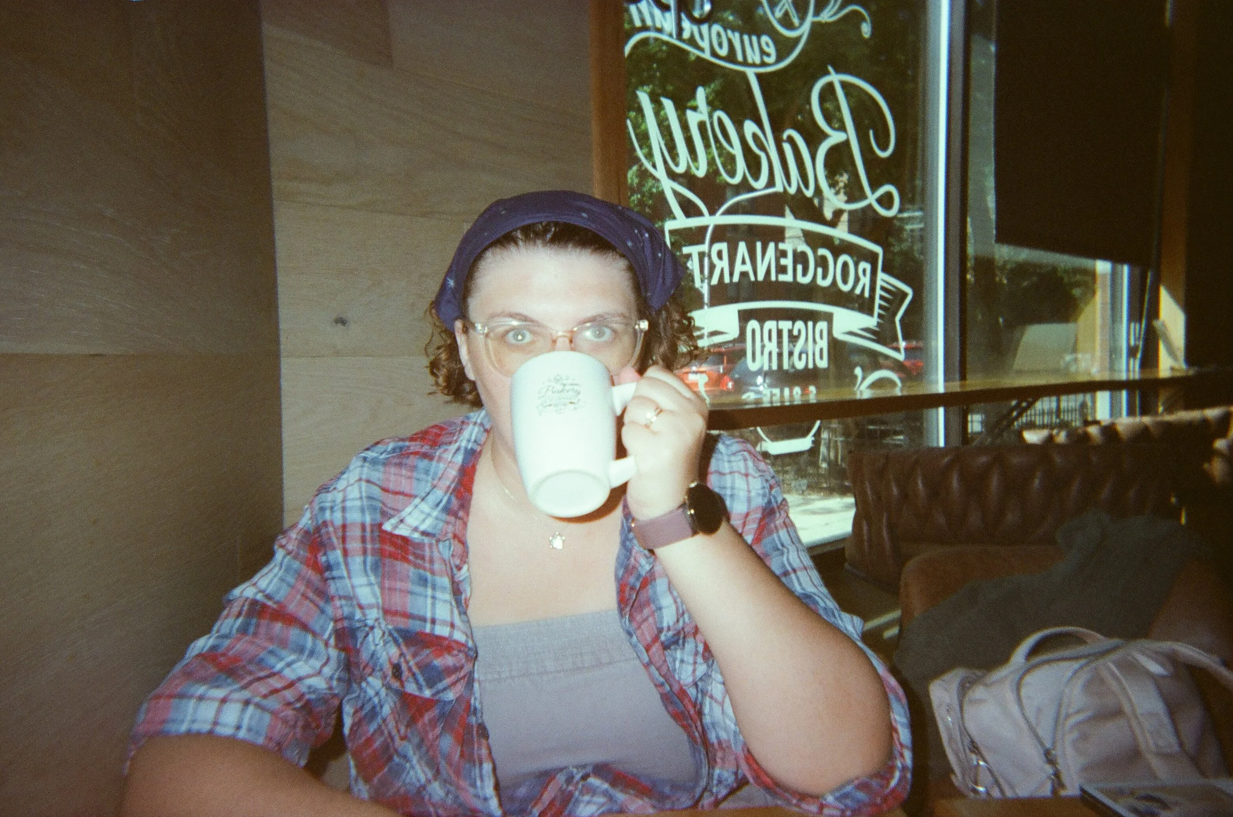 Me, looking at you dead-eyed from above the rim of a cup of coffee. Hi!